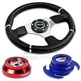 NRG-SRK-140H-RD+008R+650BL, NRG Innovations 13.78" 350mm Black Leather Racing Steering Wheel Combo with 6 Hole Short Hub Adapter with Gen 3.0 with Handle Blue Quick Release Kit SRK-140H